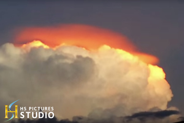 2015年8月31日、アメリカ・アリゾナ州フェニックス近郊上空にオレンジ色に燃えるようなガス状の靄(もや)が巨大な雲の向こうに現われた。これはUFOではないのか。雲の中から飛行機らしきものが現れるが、これはそのUFOから出てきたものだろう。(UFO SIGHTINGS DAILY Sep 3. 2015)