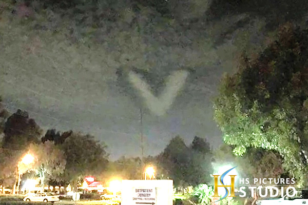 2015年9月27日、アメリカ・カリフォルニア州カーソンで、V字型をした雲が目撃された。おりしも、その晩はニュームーン、アメリカでもブラディ・ムーンが見られていたときだ。このV字型の目撃者は他にもいる。この不思議な雲は35分にわたって観られた。UFO研究家のスコット・ウェアリング氏はこの雲をV字型UFOであるとし、同タイプのものは以前にアリゾナ州フェニックスで何千もの目撃者に見られたと言う。(UFO SIGHTINGS DAILY Sept.29, 2015)